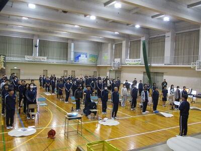5月22日(木)全校朝会が行われました。ソフトテニス部が「春季市民ソフトテニス大会兼市内中学生大会」に出場し、3ペアが入賞しましたので表彰式を行いました。おめでとうございます。校長講話の後、養護教諭から「熱中症対策について」、生徒会・ボランティア委員会からは、来週行われる「全校奉仕活動」についての説明がありました。全校奉仕活動は、地域や施設の方からの御理解・御協力をいただき、実施できることに感謝いたします。