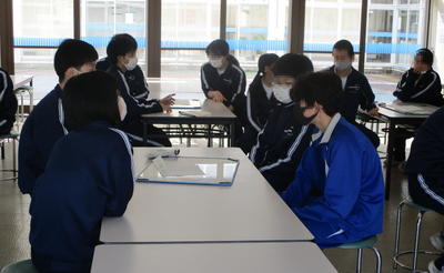 次に、広報委員会が進行しながら、卒業式の振り返りを行いました。1年生の女子生徒は、「3年生にはさまざまなことを教えてもらったので、感謝の気持ちを伝えられて良かった」と、卒業式の感想を述べていました。