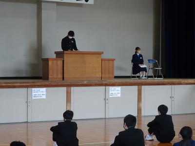 3月18日(金)に生徒朝会がありました。