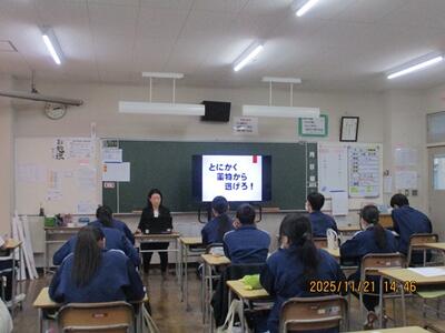 11月21日(金)薬物乱用防止教室を新潟県少年サポートセンターの方々からご協力をいただき、3年生を対象に実施しました。薬物やオーバードーズについての知識や正しい情報を学び、身体・生活・社会への様々な害について理解を深めました。薬物使用を誘われた時の対処についても学ぶことができました。
