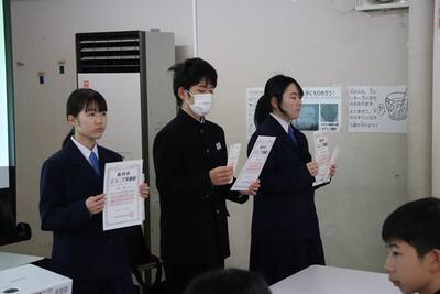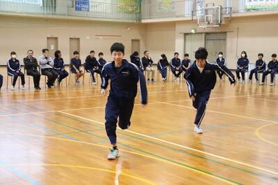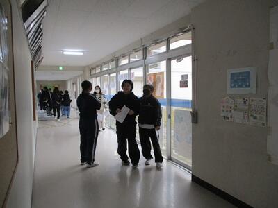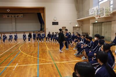 集会後は、生徒会役員がガイド役をして小学生から中学校の校舎や部活動の見学をしてもらいました。