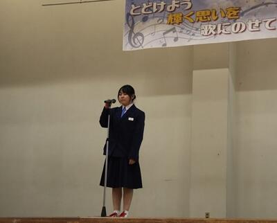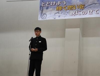 10月25日(土)に、音楽発表会が行われ実行委員会の進行、実行委員長の挨拶で始まりました。全校で「校歌」や全校合唱曲4曲を歌ってから、学年合唱の披露となりました。各学年とも練習を重ね、聴きごたえのある合唱でした。
