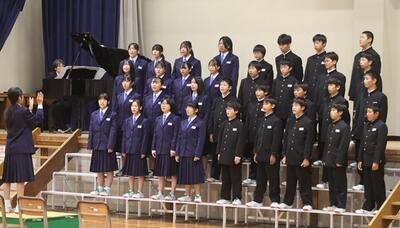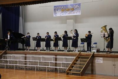 また、吹奏楽部の演奏では、12月に行われる県アンサンブルコンテストで演奏する曲やドラマの主題歌の演奏で大盛り上がりとなりました。その後のPTA合唱では、大人の歌声が会場に響きわたりました。