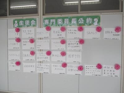 3学期最初の専門委員会が行われました。活動の振り返りや来月の仕事分担を行いました。また、議案書審議で出された、質問の回答についても話し合われました。今年の活動も残りわずかとなり、生徒会・各委員会の公約達成の花も多くなってきました。