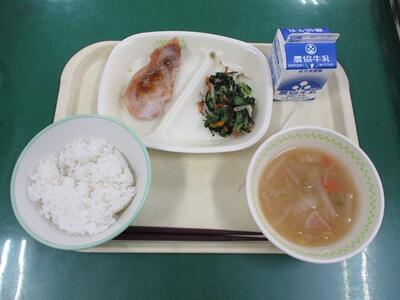 今日の給食は、築地小学校6年生が家庭科の授業で考えた献立でした。地場産物の食材がふんだんに使われ、栄養バランス、色どり、味付けも考えられていました。とても美味しかったです。