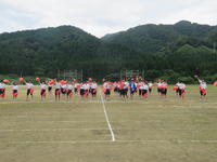 この日は、開会式で行うラジオ体操の動きの確認と、東軍と西軍に分かれての応援練習が行われました。