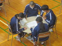 いじめの定義や具体的ないじめの事例について、全校生徒が活発に議論しました。