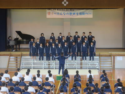 校歌斉唱ののち、1~3年生の合唱が発表されました。各学年が日々練習を重ね、8日(金)の「全校交歓練習会」のときよりも、さらに完成度を上げています。