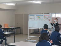 9月8日(水)の給食の時間に、給食センターから学校栄養士の方が来校され、訪問給食指導をしてくださいました。今回のテーマは「朝食について」でした。さまざまな食品を組み合わせた朝食をとることで、午前中でも集中して学習に取り組むことができるということでした。