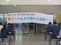 10月4日(月)から音楽発表会強調週間として、合唱練習を行っています。各学級の生徒はソプラノ、アルト、テノールの各パートに分かれて、CDの伴奏に合わせて美しい歌声を響かせていました。