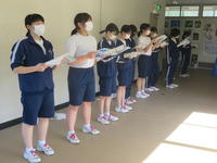 出場選手は、「特設駅伝部」として夏休み中から一生懸命に練習に励んでいた生徒たちです。3年生の部長は、「熱い気持ちをもって、最後まであきらめず、県大会出場を目指して頑張ります」と、意気込みを述べました。
