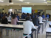 11月19日(金)の5,6限に、3年生と保護者の方を対象とした進路説明会が開催されました。高校入試を控えている3年生たちは、メモをとるなどしてしっかりと説明に耳を傾けていました。