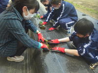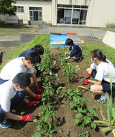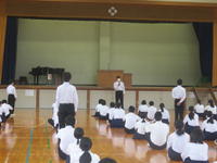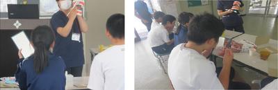 7月1日(木)の6限に、2名の歯科衛生士の方が来校し、1年生を対象とした「むし歯予防教室」が開かれました。歯科衛生士の方がむし歯や歯肉炎の原因となるプラークについて説明されたあと、1年生全員でカラーテスターによる歯垢の染め出しを行いました。その後のブラッシング指導で正しい方法を学び、講習を終えることができました。