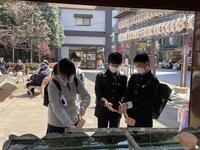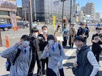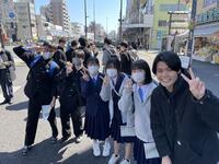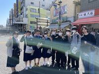 巣鴨商店街を班ごとに分かれて散策します。大正大学の学生さんが案内をしてくれます。