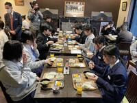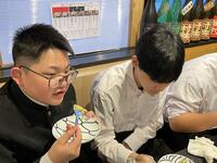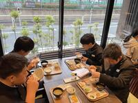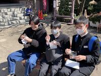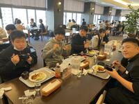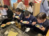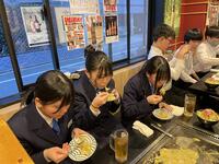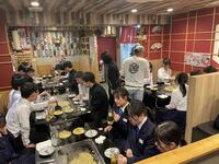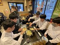 夕食の様子です。月島でもんじゃを食べました。初めて食べる生徒も多く、一口目を食べた時にとても美味しそうに食べている表情が印象的でした。