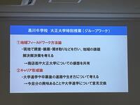 来年度、総合的な学習の時間に取り組む「地域学習」についても、大学生の取組を学んだり、テーマに沿ったグループワークを行いました。