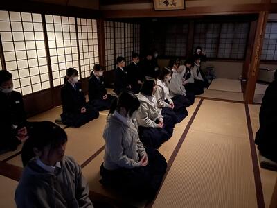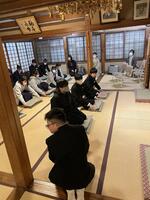 金龍寺で座禅体験をしました。10分座禅、3分休憩、10分座禅でした。集中した時間を過ごせたようで、終わった時に「早かったぁ〜」「2分に感じた」などの感想を言っている生徒がいました。