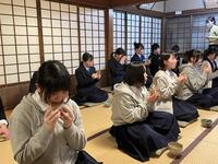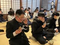 座禅体験後、抹茶とどら焼きをいただきました。抹茶を飲んだ時には、苦いという声が多かったように感じましたが、初めて飲んだら「とても美味しかった」と笑顔を見せる生徒もいました。