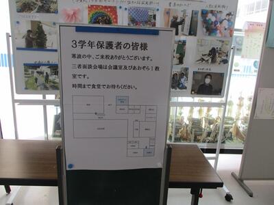 週末に寒波の影響で学校周辺でも雪が多く積もりました。そのような中ですが、本日から3年生の三者面談を実施いたします。保護者の皆様は、気をつけて御来校ください。