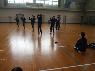 3年生の保健体育の授業では、選択した剣道かダンスを行っていました。剣道は、面などの防具を付け、元気な声を出して取り組んでいました。ダンスは、練習後に発表会を行い、剣道を選択した生徒や空き時間の先生方に披露しました。息の合ったダンスや見どころでは観衆からの歓声と拍手が沸き起こっていました。