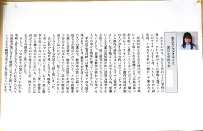 11月18日(土)、産業文化会館で「たいない平和のつどい」が行われました。そこで、「広島平和記念式典体験記」の発表会が行われました。下の写真が発表内容です。