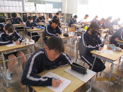 避難訓練 投稿: 管理者 (10:40) カテゴリー: 今日の出来事 10月20日(月)2限に火災を想定した避難訓練を実施しました。生徒は放送を静かに聞き、その後の指示により落ち着いて避難することができました。命を守る大切な活動に真剣に取り組む姿が見られました。 訓練終了後は、学年ごとに教室で防災学習を行いました。大雨による河川の氾濫、土砂崩れ等による災害について考え、意見交換や動画の視聴を行いました。避難経路や避難所の確認等、日頃の備えについて学びました。 Tweet -