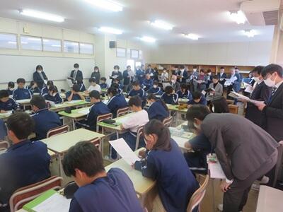 11月26日(水)人権教育、同和教育の視点に立った道徳授業を公開しました。黒川中学校1年生の人権学習では、「様々な人権課題と部落差別問題を関連付けて考えることを通して、自らの人権に目を向けるとともに、人権文化を築くための実践力を身に付ける」ことをねらいとしています。今回の題材名は「部落差別と私」(自校作)でした。公開授業、協議会には、部落解放同盟中条支部長様をはじめ胎内市役所及び教育委員会、関係機関、市内外のこども園、小学校、中学校、高等学校より参加していただきました。ありがとうございました。