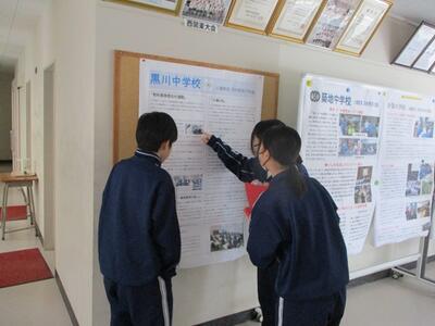 1月16日(金)人権パネル展 投稿: 管理者 (09:49) カテゴリー: 今日の出来事 胎内市人権強調週間期間中(12月4~10日)、胎内市役所で展示されていた市内4中学校のパネルを本日から21日まで展示しています。廊下を通る生徒達は足を止め、各校の人権教育、同和教育の取組を見ていました。今後も黒川中学校では、私たち教職員も正しい人権感覚をもち、生徒と共に学ぶ姿勢で人権教育、同和教育を進めて参ります。 Tweet -