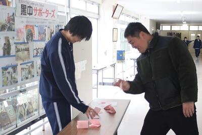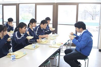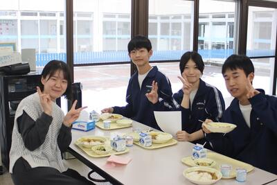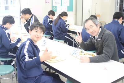 1月19日(月)先生インタビュー 投稿: 管理者 (01/19) カテゴリー: 今日の出来事 生徒会が企画した「先生インタビュー」が給食の時間に行われました。先生方はクジで座席が決まり、座ったテーブルでは、生徒会が用意したインタビュー項目から生徒達は質問をしていました。給食を食べながら、楽しい雰囲気で質問をしたり、回答したりして給食の時間があっという間に終わりました。生徒と先生方の理解が深まりました。生徒会の皆さん、楽しい企画をありがとうございました。 Tweet -