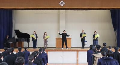 3月31日(火)惜別 投稿: 管理者 (03/31) カテゴリー: 今日の出来事 今年度末で異動・大学院派遣される4名の先生方の離任式が3月25日行われました。今までありがとうございました。新任地での益々のご活躍を祈念いたします。 Tweet -