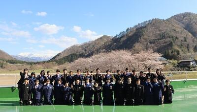 4月8日(木)入学式後の学活 投稿: 管理者 (17:43) カテゴリー: 今日の出来事 入学式後の学活では、学年職員から目指す学級の姿や明日からの予定について説明がありました。机には真新しい教科書が積まれていて、授業が始まるのが楽しみですね。また、学活前に1年生だけで集合写真を撮影しました。青空の下、中学校生活が始まる高揚感に満ちた新入生、グラウンドの桜と飯豊山脈の残雪が見事に収まった1枚です。 Tweet -