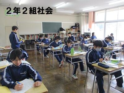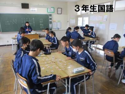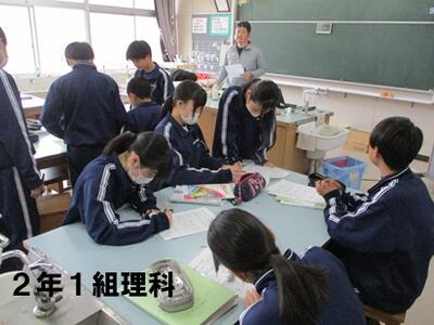 4月16日(木)今日の授業 投稿: 管理者 (04/16) カテゴリー: 授業の様子 4限の授業の様子を紹介いたします。 1年生は英語の授業で、ペアでのQ&Aやアルファベットの発音練習をしていました。廊下まで大きな声が響いていました。 2年生1組は理科室で、実験のまとめをグループで行っていました。実験を行うことで理解が深まっていました。2年2組は社会の授業で、地図帳を確認しながらプリントをまとめていました。 3年生は国語の授業で、漢字のテスト後、対話を深める活動としてかるたを行いました。どの学年も生徒は熱心に課題に取り組んでいました。 Tweet -